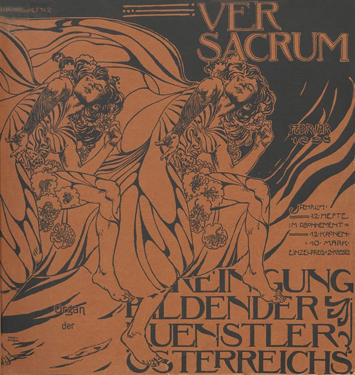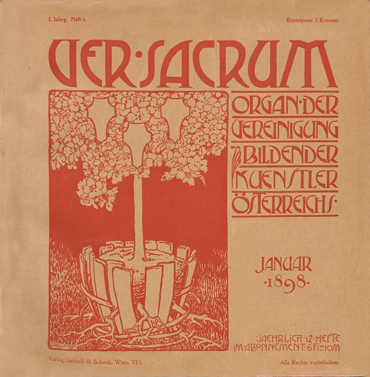 Front pages on Ver Sacrum from January, February, March and August, 1898.